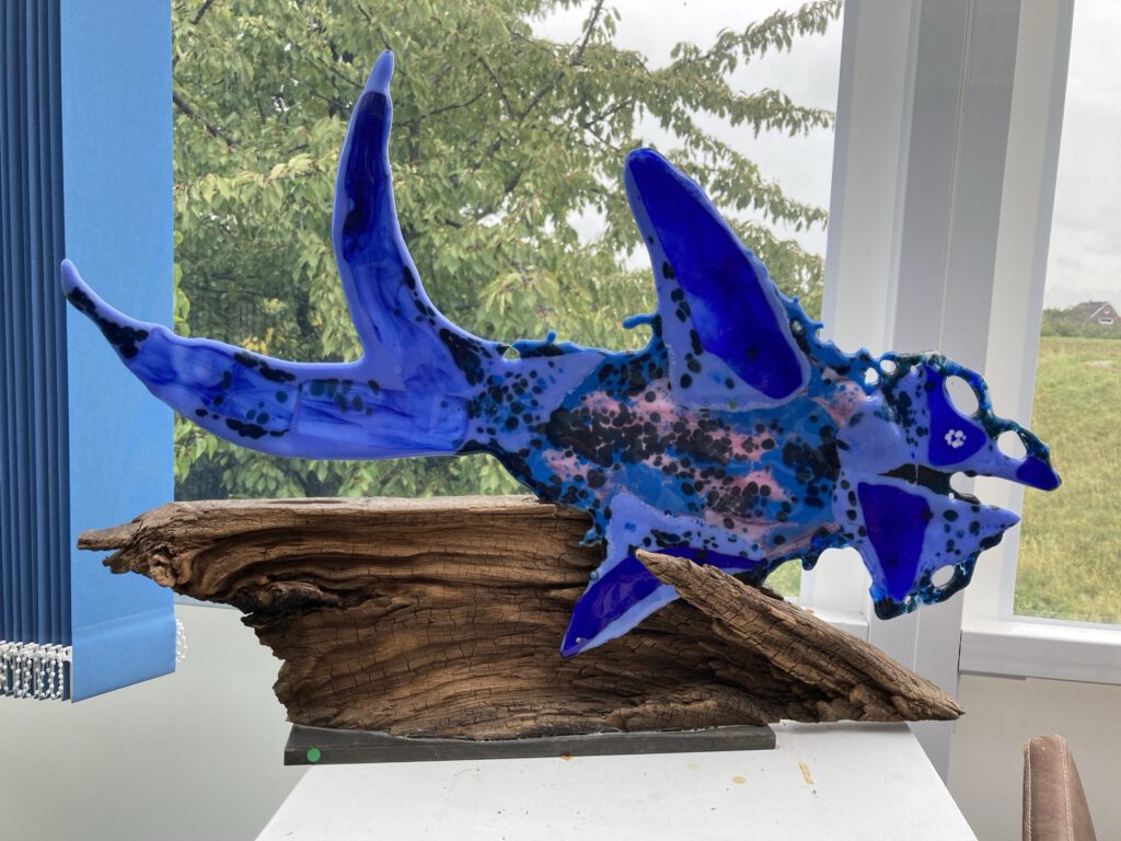 Wenn Natur und Glas aufeinandertreffen, ist das Ergebnis immer eine Überaschung – das künstliche, uns so vertraute Glas kann sich vereinigen zu neuen Objekten mit Wurzeln und Hölzern, als ob kein anderer Bezug je bestanden hätte. So wirken Gundula Menkings Objekte aus Glas immer wie Traumbilder, weil sie nicht Natur sind und doch das sind, was nicht sein kann – Objekte, die im Fluß erstarrt sind. So wird ein ganz besonderer Augenblick eingefangen.